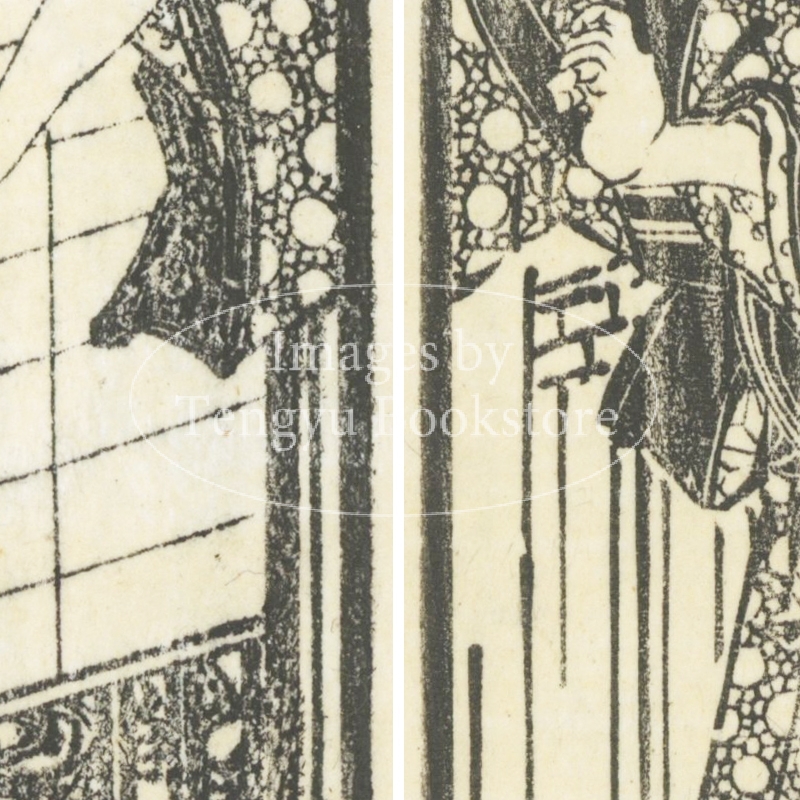 本来は2枚に分けて描かれた作品であるため、色味や図案の整合に若干の不統一があることをご了承ください。