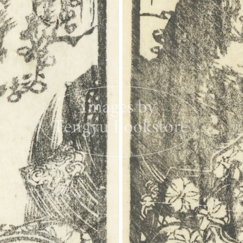 本来は2枚に分けて描かれた作品であるため、色味や図案の整合に若干の不統一があることをご了承ください。