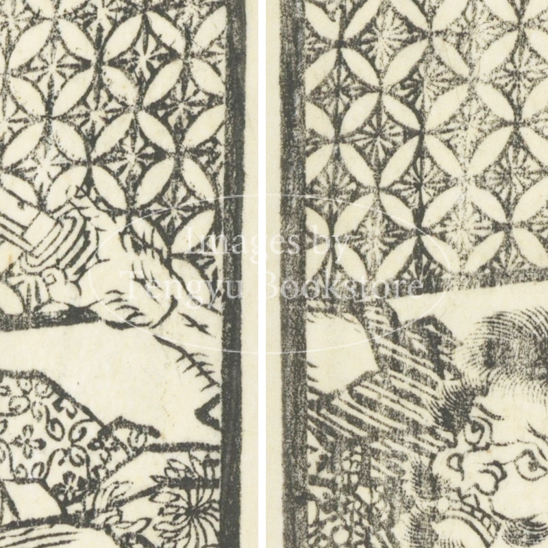 本来は2枚に分けて描かれた作品であるため、色味や図案の整合に若干の不統一があることをご了承ください。