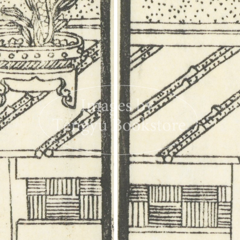 本来は2枚に分けて描かれた作品であるため、色味や図案の整合に若干の不統一があることをご了承ください。