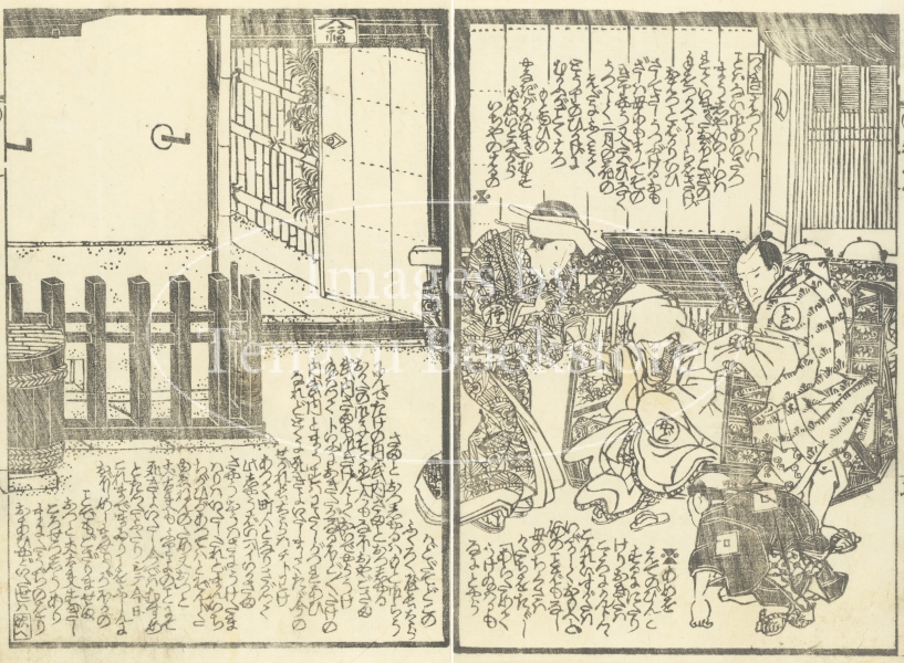 江戸後期の戯作者 墨川亭雪麿(1797-1856)が物語を、浮世絵師 渓斎英泉(1791-1848)が挿絵を手がけています。