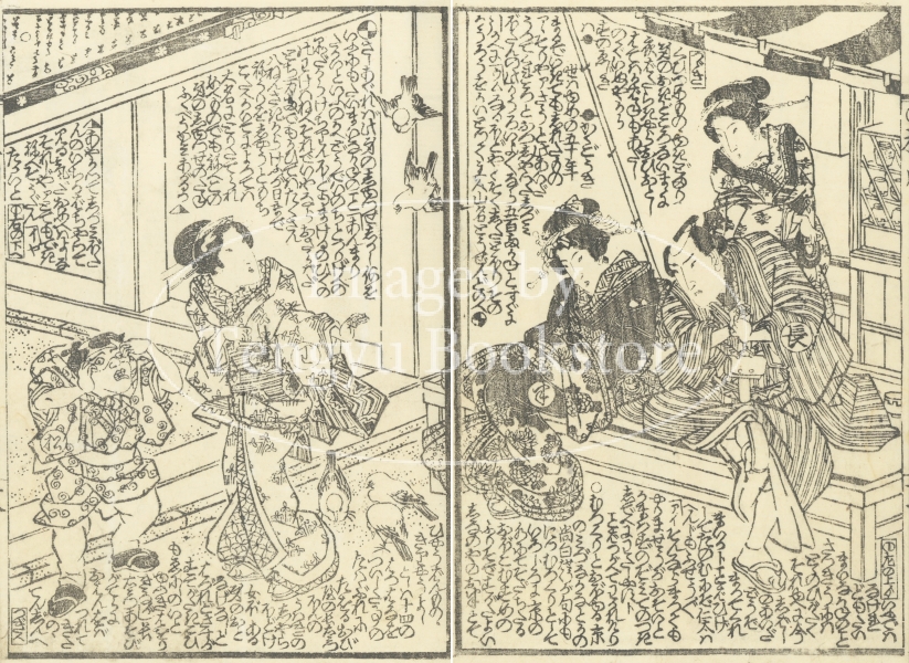 江戸後期の戯作者 墨川亭雪麿(1797-1856)が物語を、浮世絵師 渓斎英泉(1791-1848)が挿絵を手がけています。