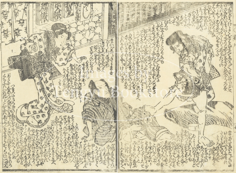 江戸後期の戯作者 墨川亭雪麿(1797-1856)が物語を、浮世絵師 渓斎英泉(1791-1848)が挿絵を手がけています。