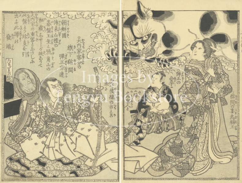 化け猫にまつわるお家騒動を描いた、江戸時代後期の草双紙「金花七変化」からの一枚。