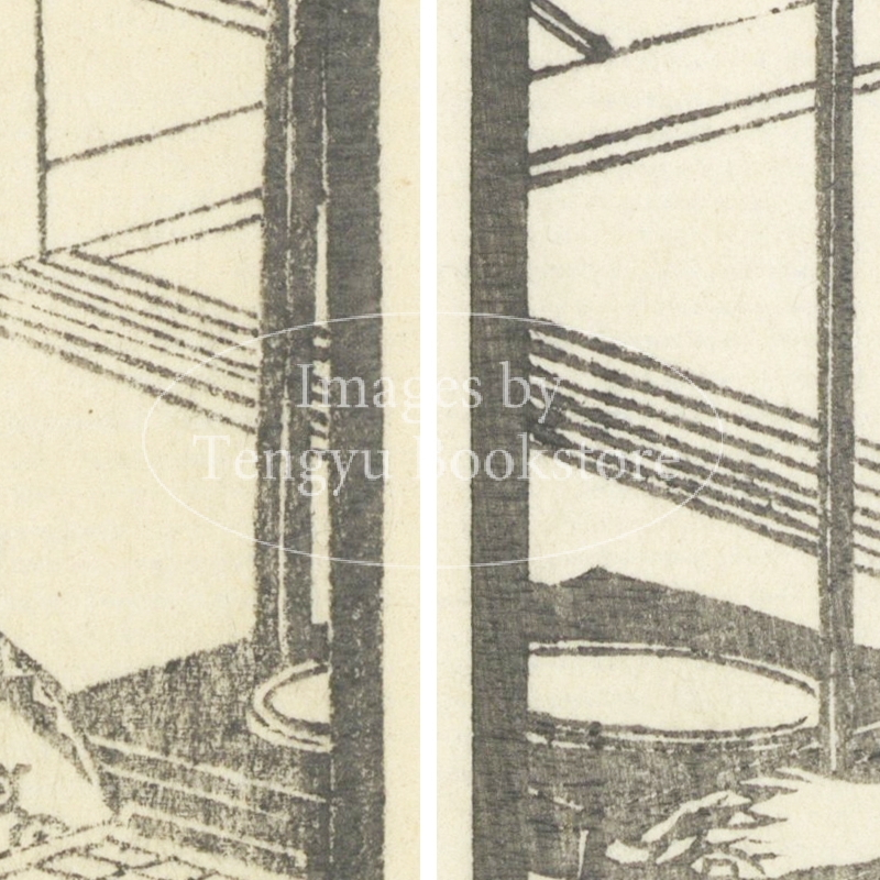 本来は2枚に分けて描かれた作品であるため、色味や図案の整合に若干の不統一があることをご了承ください。