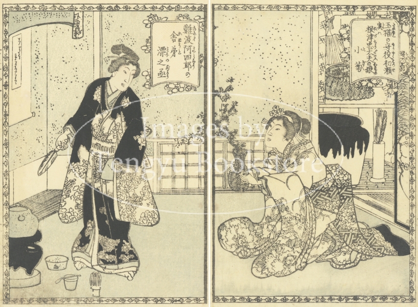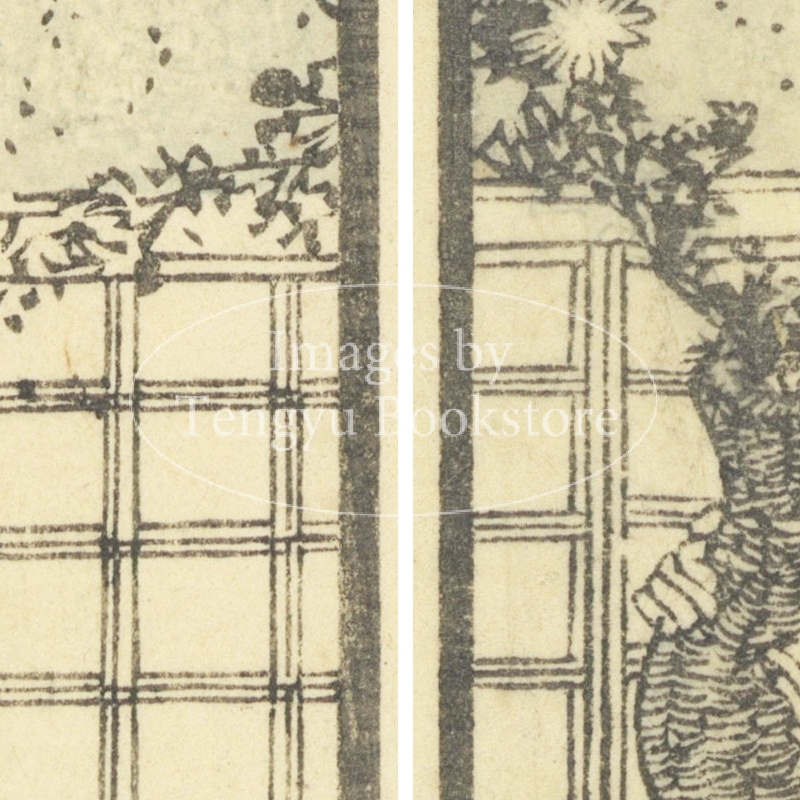 本来は2枚に分けて描かれた作品であるため、色味や図案の整合に若干の不統一があることをご了承ください。