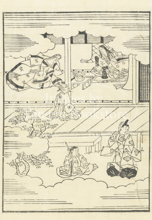 日本に現存する最古の物語と言われる古典「竹取物語」の挿絵。江戸時代中期に刊行された絵入本収録のもの。
