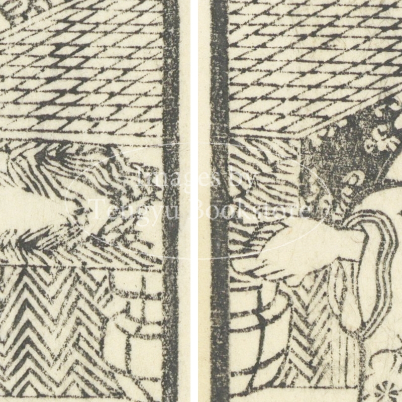 本来は2枚に分けて描かれた作品であるため、色味や図案の整合に若干の不統一があることをご了承ください。