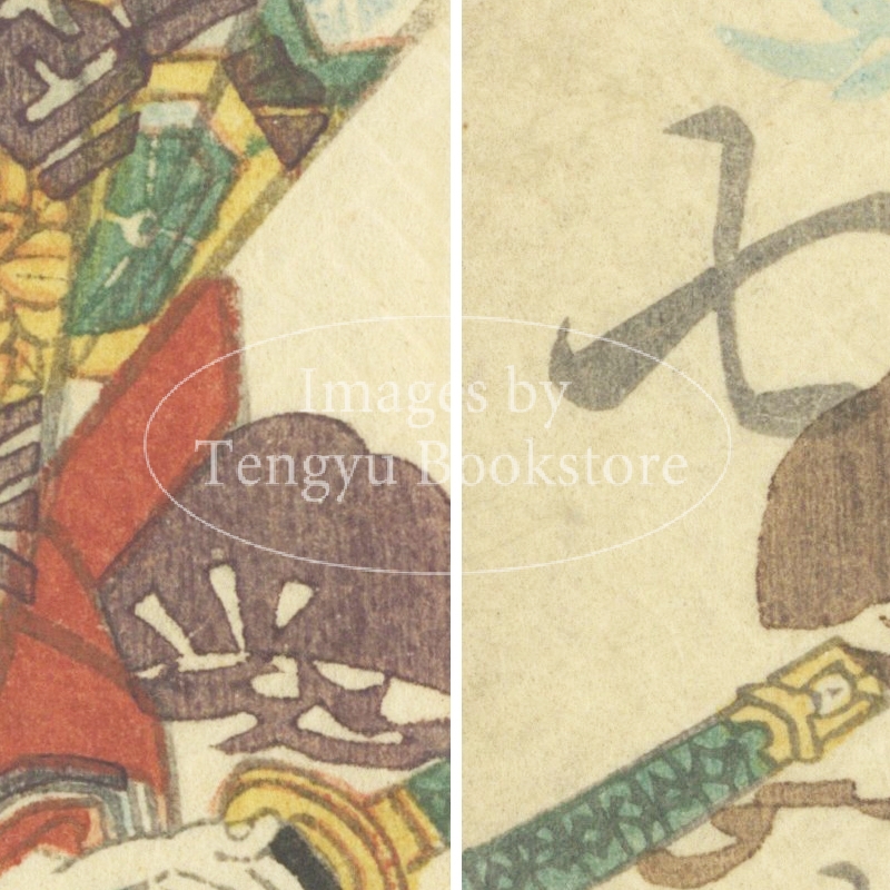 本来は2枚に分けて描かれた作品であるため、色味や図案の整合に若干の不統一があることをご了承ください。