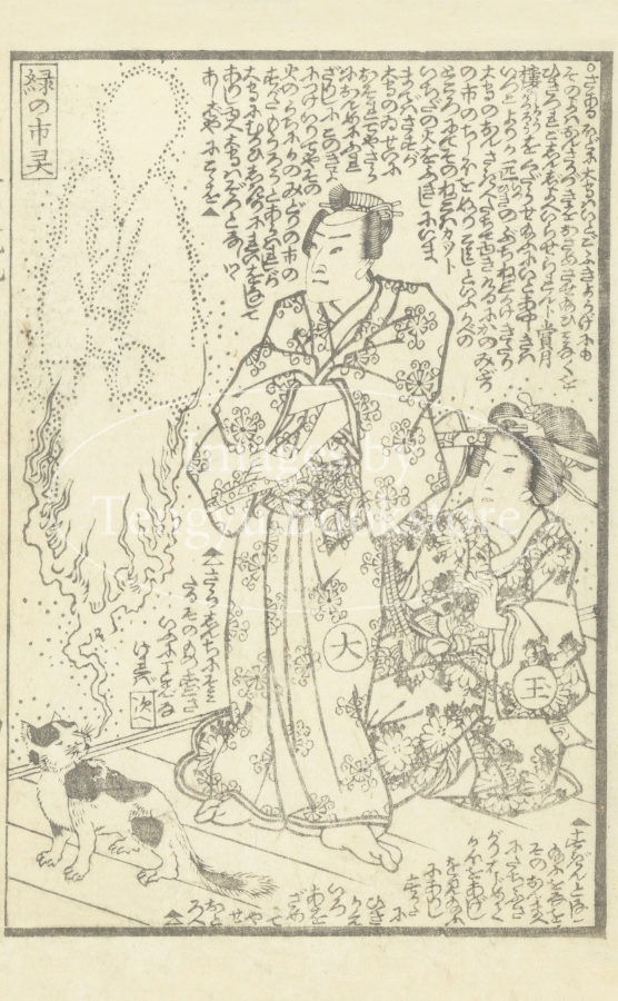 化け猫にまつわるお家騒動を描いた、江戸時代後期の草双紙「金花七変化」からの一枚。