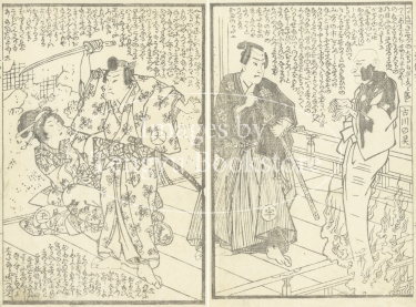化け猫にまつわるお家騒動を描いた、江戸時代後期の草双紙「金花七変化」からの一枚。