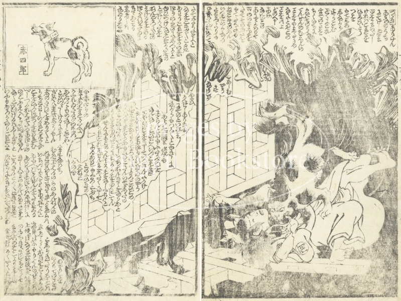 化け猫にまつわるお家騒動を描いた、江戸時代後期の草双紙「金花七変化」からの一枚。