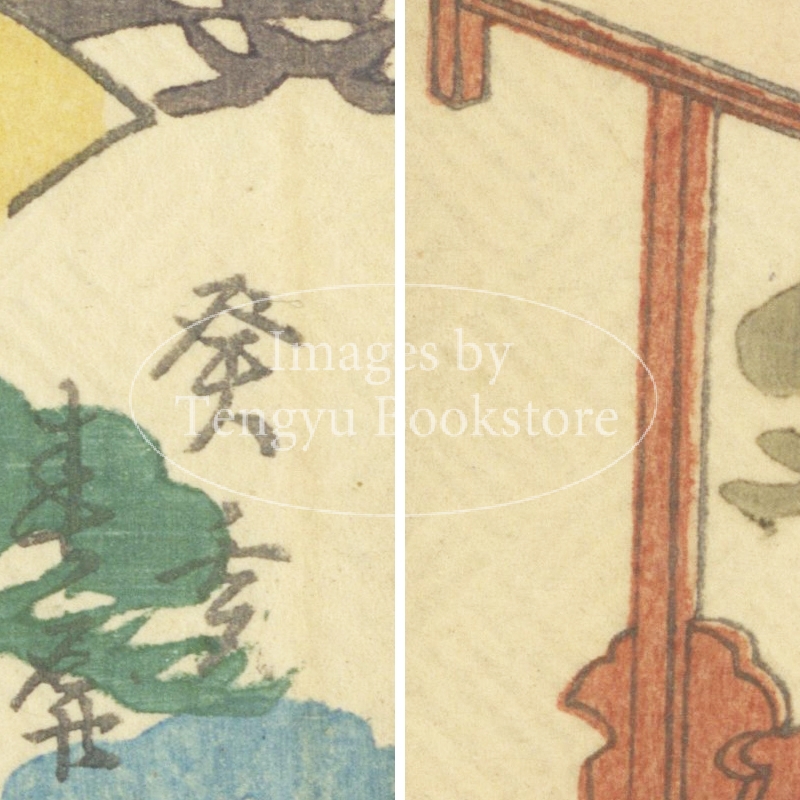 本来は2枚に分けて描かれた作品であるため、色味や図案の整合に若干の不統一があることをご了承ください。