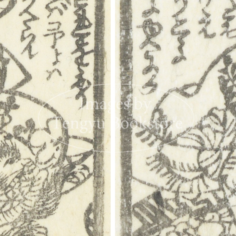 本来は2枚に分けて描かれた作品であるため、色味や図案の整合に若干の不統一があることをご了承ください。