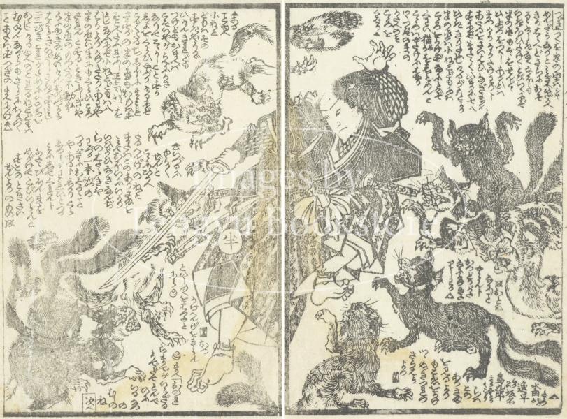 化け猫にまつわるお家騒動を描いた、江戸時代後期の草双紙「金花七変化」からの一枚。