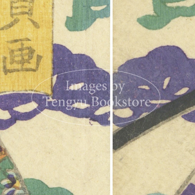 本来は2枚に分けて描かれた作品であるため、色味や図案の整合に若干の不統一があることをご了承ください。