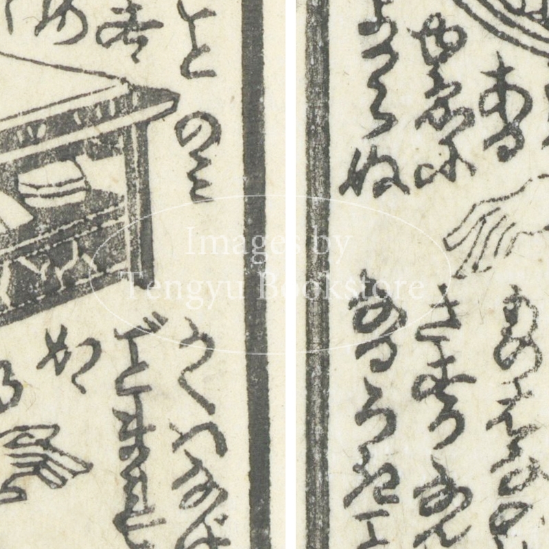 本来は2枚に分けて描かれた作品であるため、色味や図案の整合に若干の不統一があることをご了承ください。