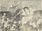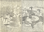 江戸後期に刊行された、釈迦の一代記を読みやすくした合巻「釈迦八相倭文庫」からの一枚。