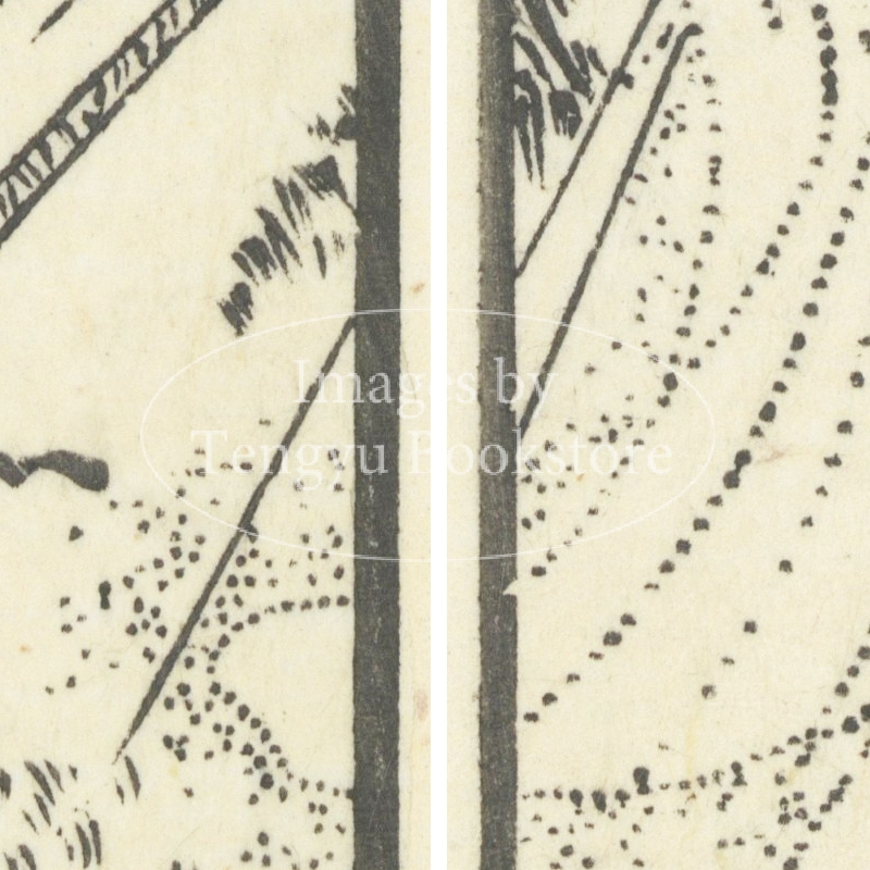 本来は2枚に分けて描かれた作品であるため、色味や図案の整合に若干の不統一があることをご了承ください。