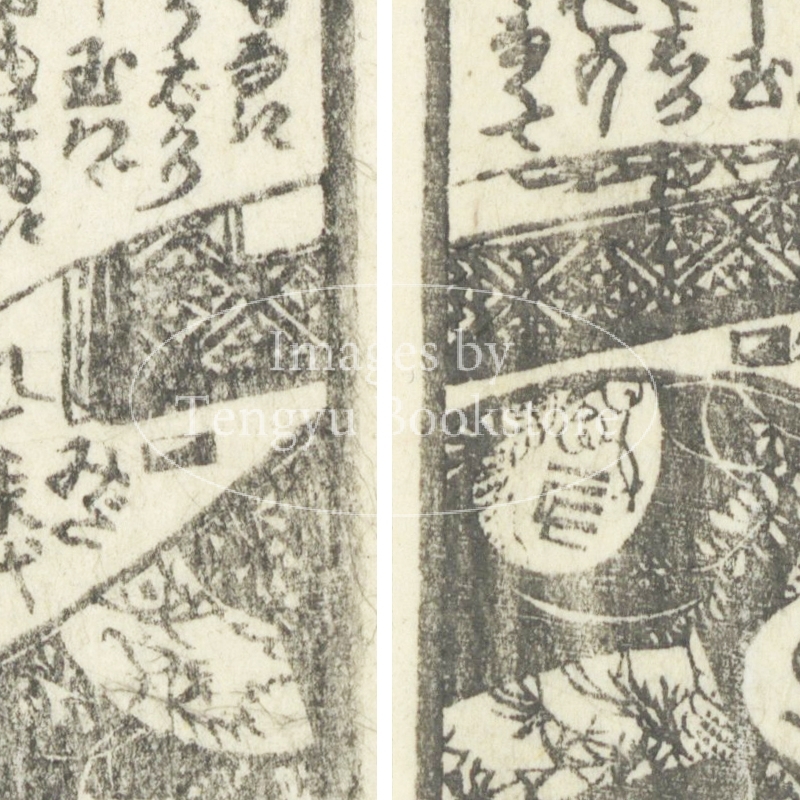本来は2枚に分けて描かれた作品であるため、色味や図案の整合に若干の不統一があることをご了承ください。