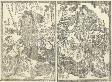 本来は2枚に分けて描かれた作品であるため、色味や図案の整合に若干の不統一があることをご了承ください。