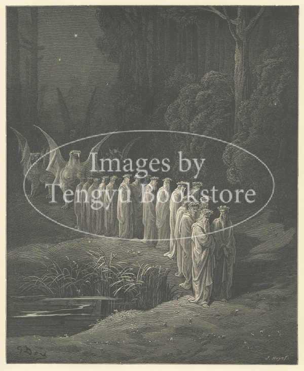 イタリア文学の古典「神曲」に19世紀を代表する挿絵画家ギュスターヴ・ドレ(1832-1883)が挿絵を付けた英訳版挿絵本「神曲:煉獄篇・天国編」の挿絵。