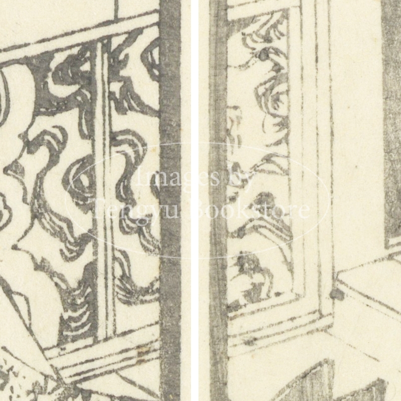 本来は2枚に分けて描かれた作品であるため、色味や図案の整合に若干の不統一があることをご了承ください。