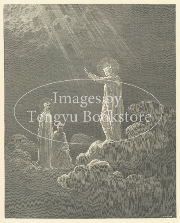 イタリア文学の古典「神曲」に19世紀を代表する挿絵画家ギュスターヴ・ドレ(1832-1883)が挿絵を付けた英訳版挿絵本「神曲:煉獄篇・天国篇」の挿絵。