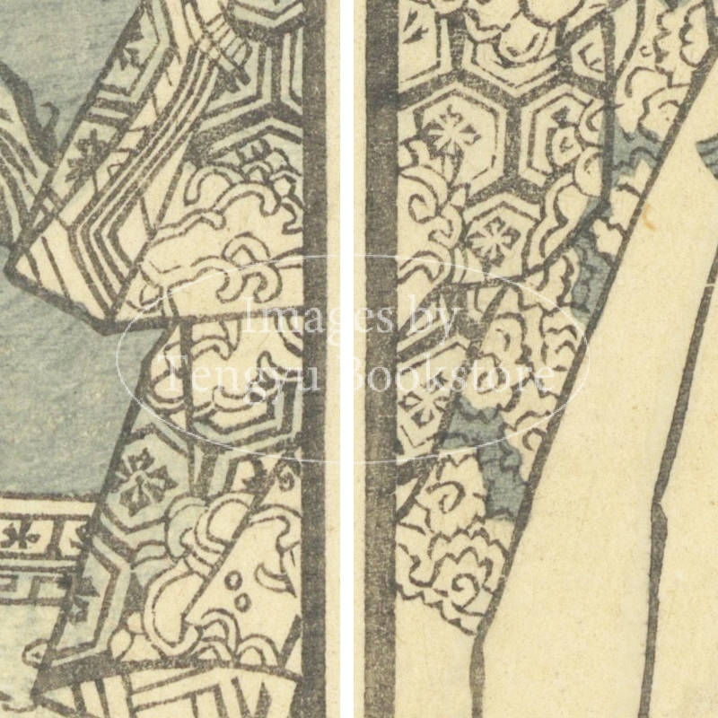 本来は2枚に分けて描かれた作品であるため、色味や図案の整合に若干の不統一があることをご了承ください。