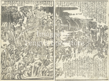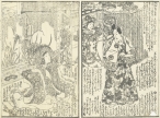江戸後期に刊行された、釈迦の一代記を読みやすくした合巻「釈迦八相倭文庫」からの一枚。