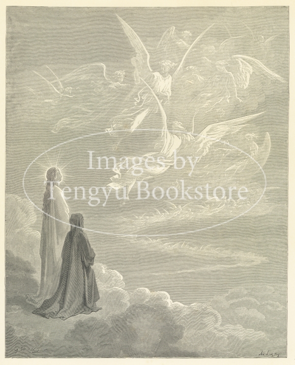 イタリア文学の古典「神曲」に19世紀を代表する挿絵画家ギュスターヴ・ドレ(1832-1883)が挿絵を付けた英訳版挿絵本「神曲:煉獄篇・天国篇」の挿絵。