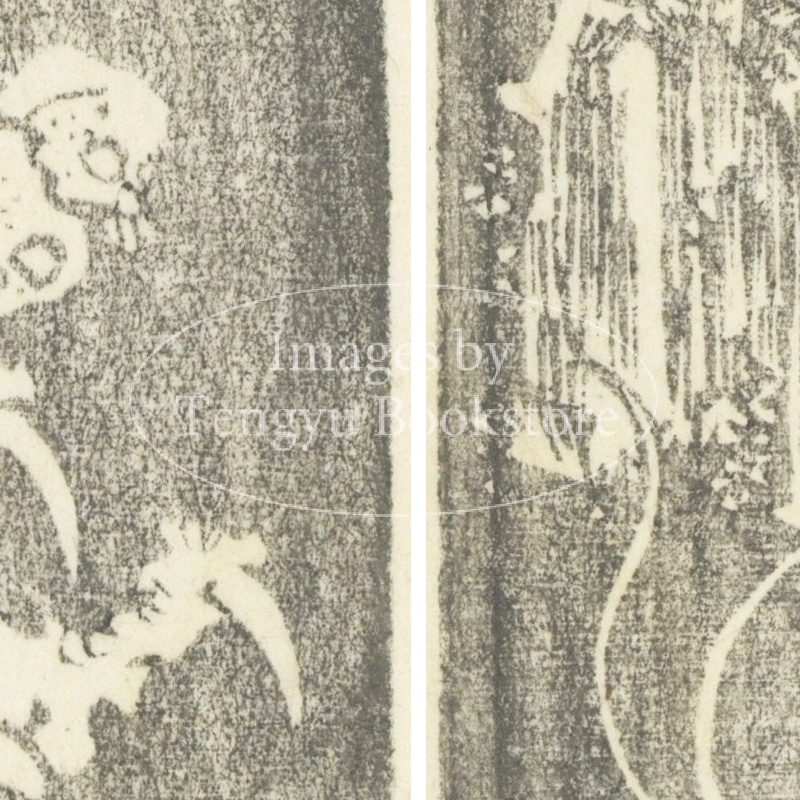 本来は2枚に分けて描かれた作品であるため、色味や図案の整合に若干の不統一があることをご了承ください。