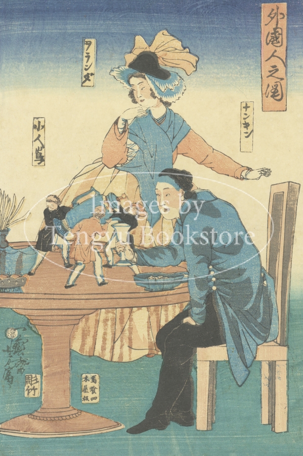 横浜絵を得意とした幕末から明治の浮世絵師 歌川芳富(生没年不詳)による、「南京人」「オランダ人」「小人」の図。