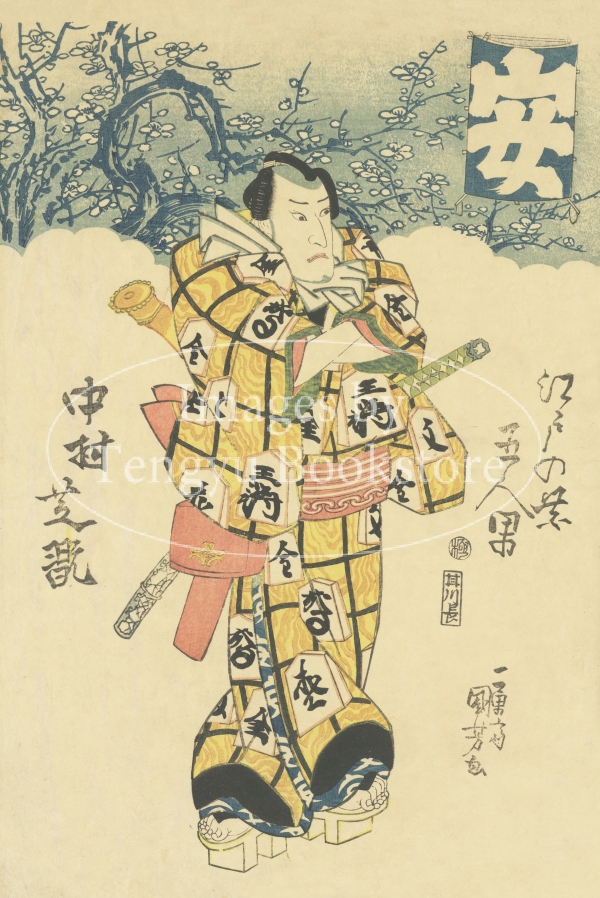 江戸時代後期に高い人気を誇った名浮世絵師 歌川国芳(1798-1862) による連作浮世絵「江戸の花五人男」のうち、歌舞伎役者 中村芝翫を描いた一枚。