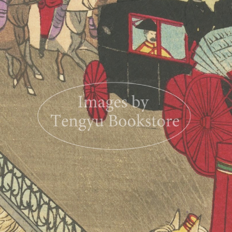 1889年の、大日本帝国憲法発布式の後、青山練兵場へ移動する場面を描いたもの。