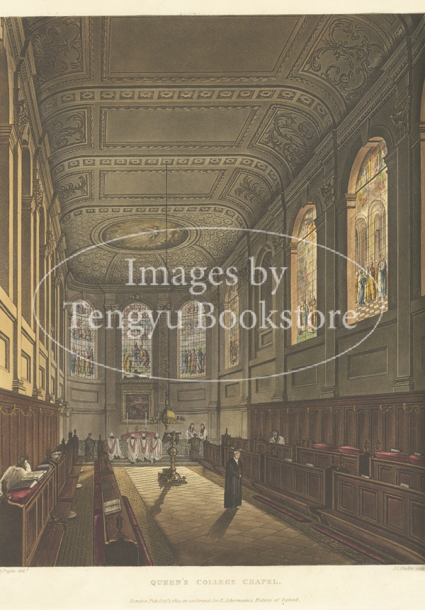 美麗な挿絵本を数多く出版したルドルフ・アッカーマン社が手掛けた本書は、歴史ある大学の建築を様々な角度から描いた手彩色銅版画を約60点枚収録したもの。