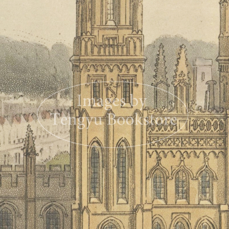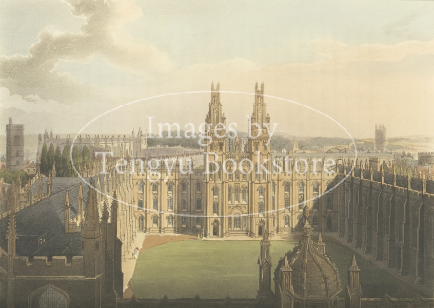 美麗な挿絵本を数多く出版したルドルフ・アッカーマン社が手掛けた本書は、歴史ある大学の建築を様々な角度から描いた手彩色銅版画を約60点枚収録したもの。