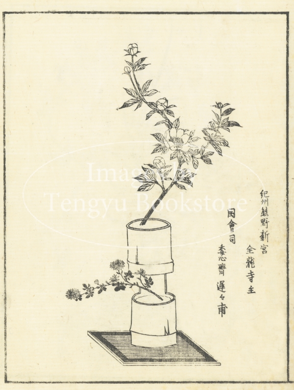 江戸中期に創設された華道の流派 未生流の生け花を伝える書物「未生家 插花桜農香」の挿絵。