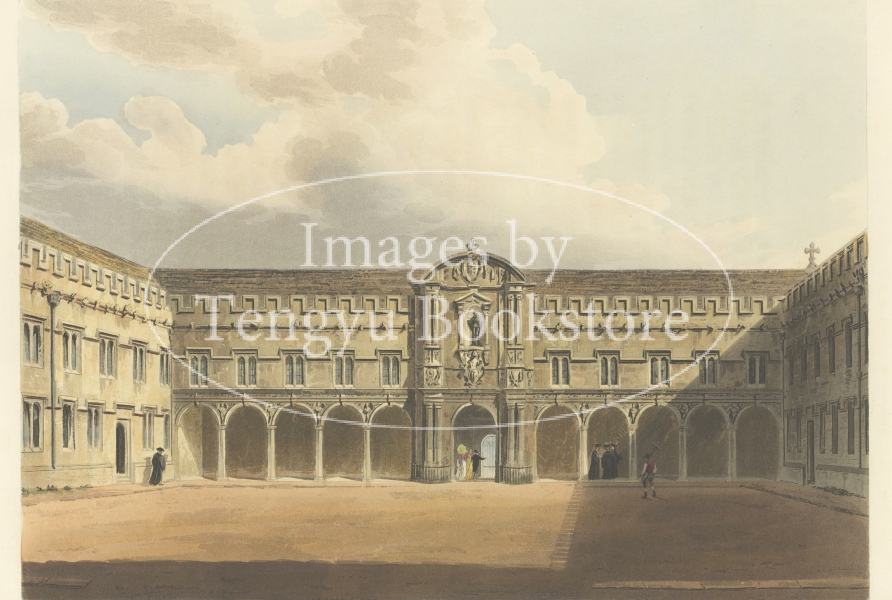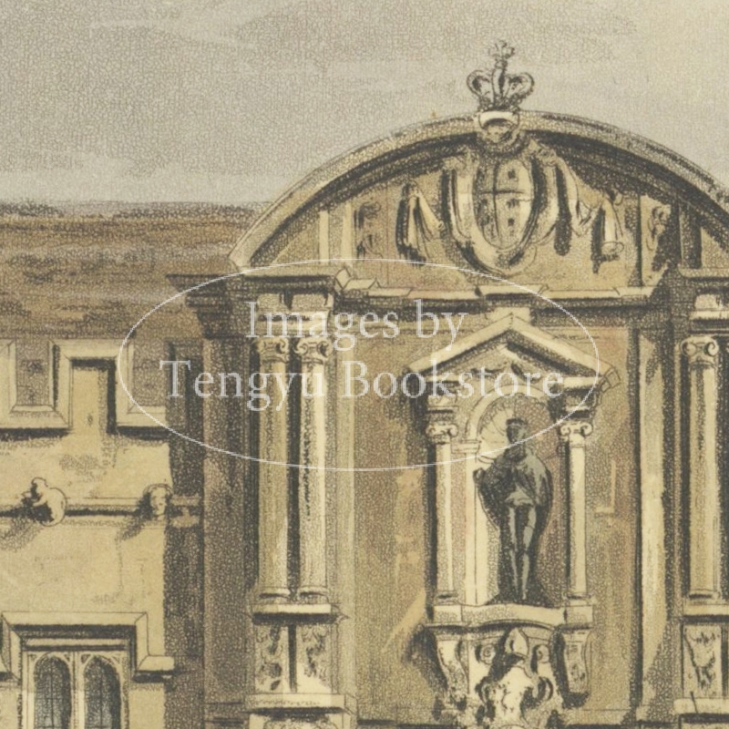 美麗な挿絵本を数多く出版したルドルフ・アッカーマン社が手掛けた本書は、歴史ある大学の建築を様々な角度から描いた手彩色銅版画を約60点枚収録したもの。