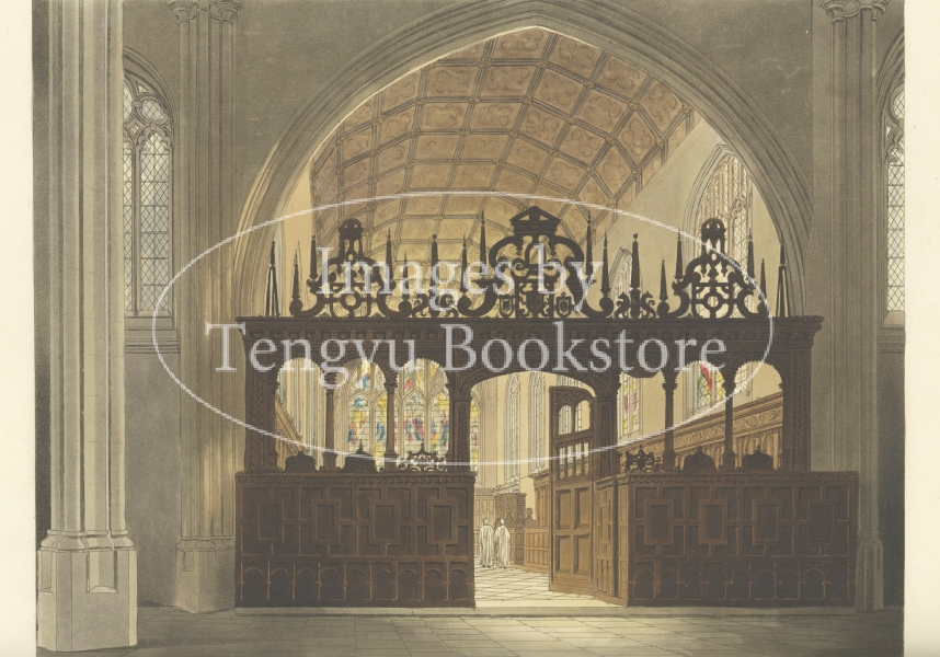 美麗な挿絵本を数多く出版したルドルフ・アッカーマン社が手掛けた本書は、歴史ある大学の建築を様々な角度から描いた手彩色銅版画を約60点枚収録したもの。
