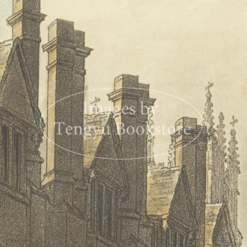 美麗な挿絵本を数多く出版したルドルフ・アッカーマン社が手掛けた本書は、歴史ある大学の建築を様々な角度から描いた手彩色銅版画を約60点枚収録したもの。
