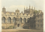 中世に創設された、イギリスを代表する名門オックスフォード大学を紹介した19世紀刊行の挿絵本中の一図。