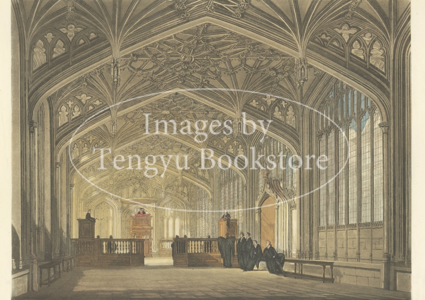 美麗な挿絵本を数多く出版したルドルフ・アッカーマン社が手掛けた本書は、歴史ある大学の建築を様々な角度から描いた手彩色銅版画を約60点枚収録したもの。