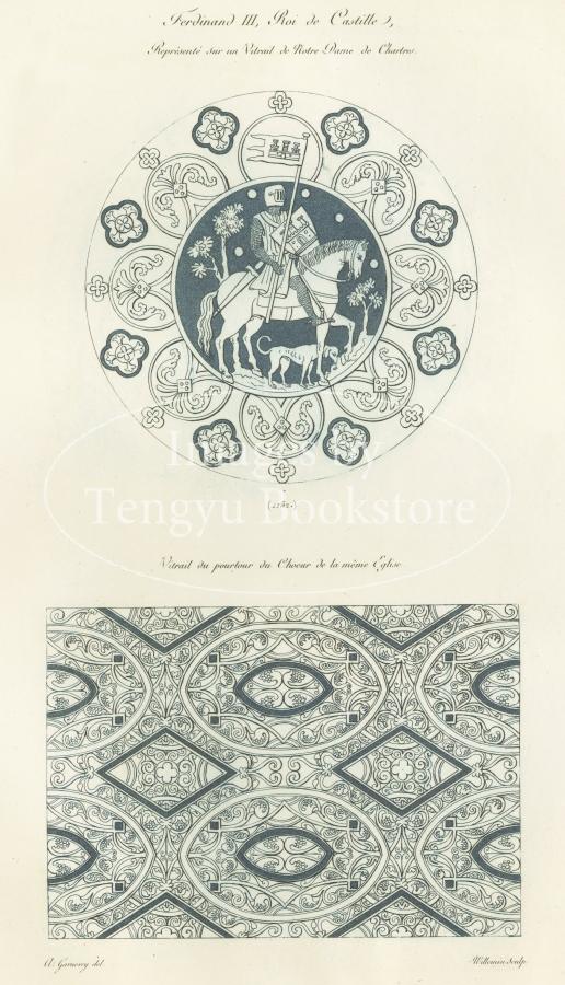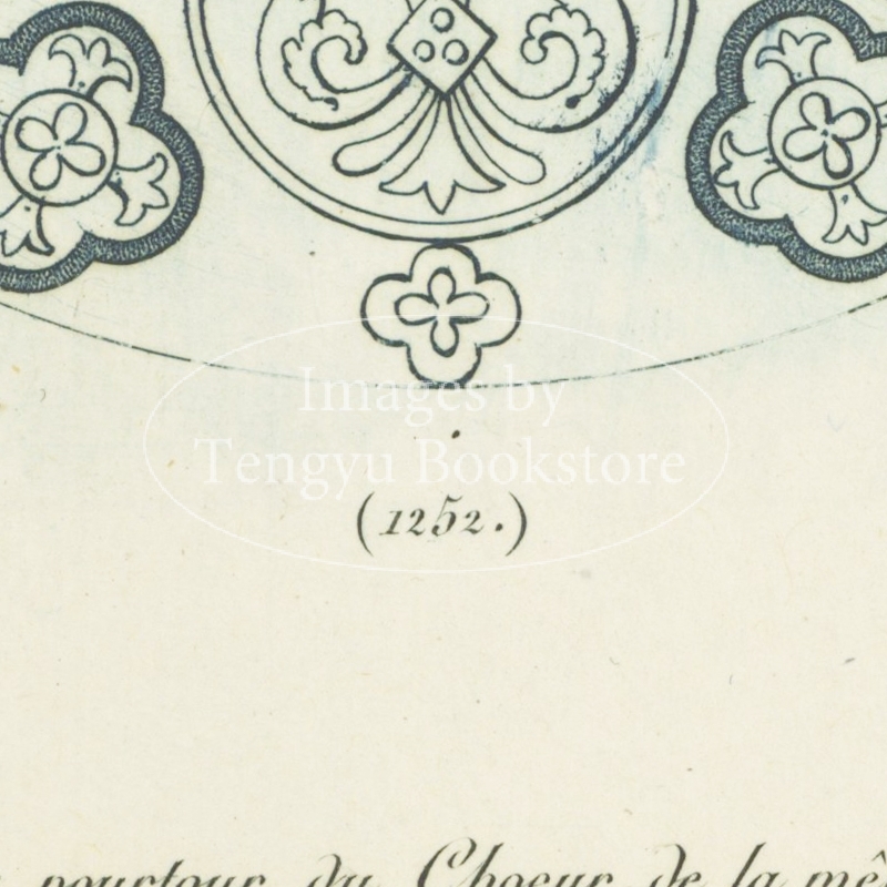 本書は中世フランスの建築や道具などに見られる歴史的装飾デザインを収集し、銅版画に起こした図版集。