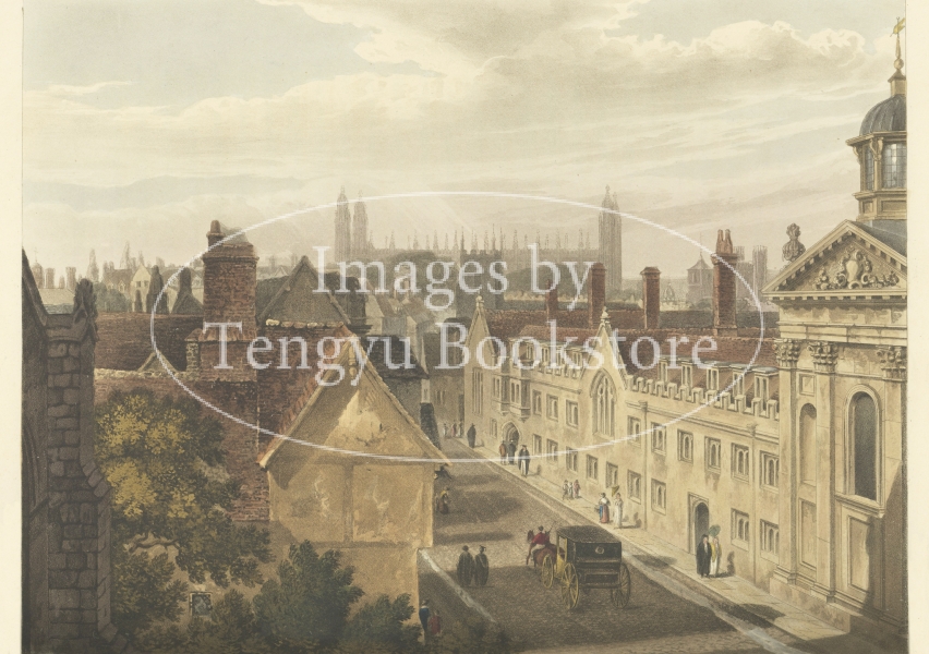 美麗な挿絵本を数多く出版したルドルフ・アッカーマン社が手掛けた本書は、歴史ある大学の建築を様々な角度から描いた手彩色銅版画を約70点枚収録したもの。