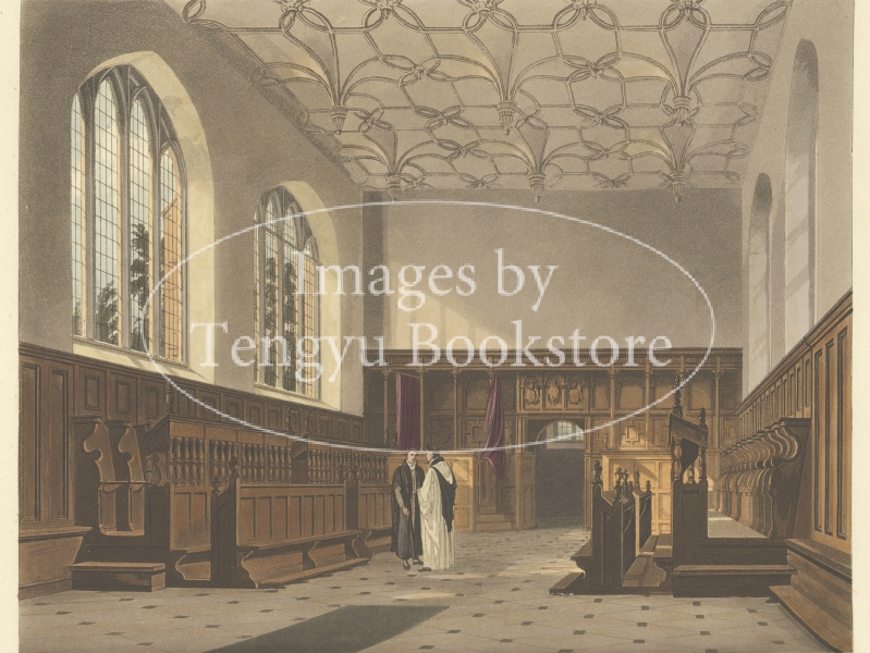 美麗な挿絵本を数多く出版したルドルフ・アッカーマン社が手掛けた本書は、歴史ある大学の建築を様々な角度から描いた手彩色銅版画を約70点枚収録したもの。