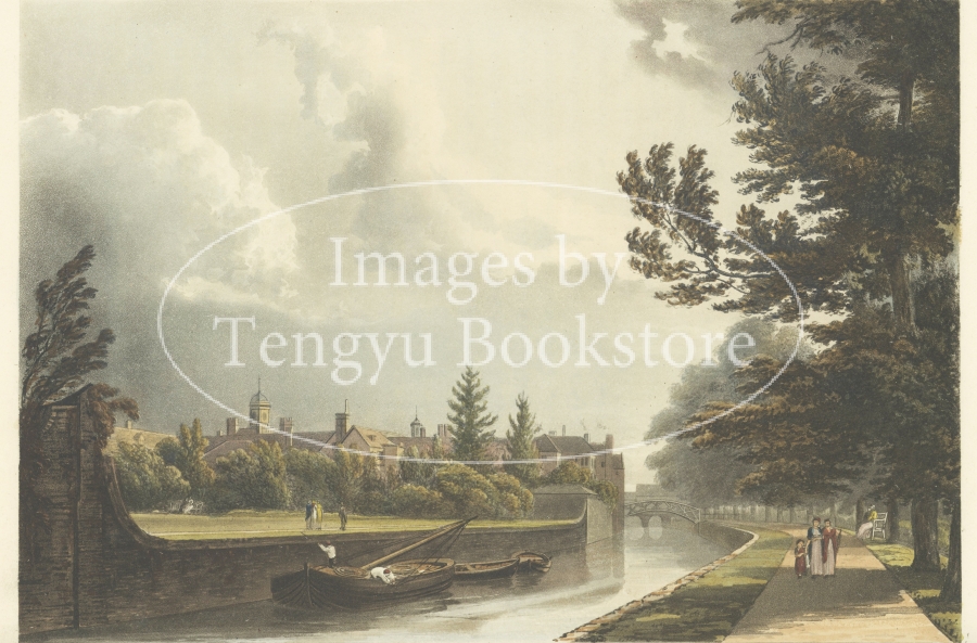 美麗な挿絵本を数多く出版したルドルフ・アッカーマン社が手掛けた本書は、歴史ある大学の建築を様々な角度から描いた手彩色銅版画を約70点枚収録したもの。
