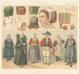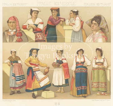多色刷石版によってカラー印刷された、世界の歴史的衣装や民族衣装の図は、資料的な価値はもちろん、美術的にも評価の高い貴重なイラストです。