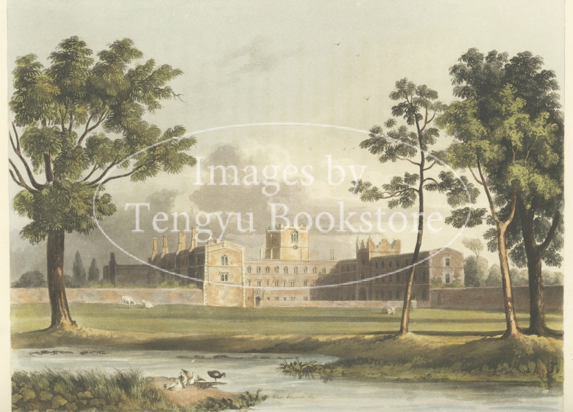 美麗な挿絵本を数多く出版したルドルフ・アッカーマン社が手掛けた本書は、歴史ある大学の建築を様々な角度から描いた手彩色銅版画を約70点枚収録したもの。