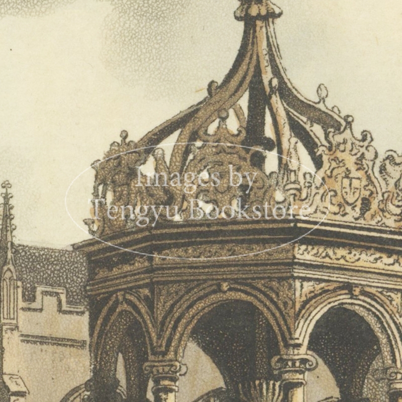美麗な挿絵本を数多く出版したルドルフ・アッカーマン社が手掛けた本書は、歴史ある大学の建築を様々な角度から描いた手彩色銅版画を約70点枚収録したもの。